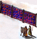 Ex 27:16 "E à porta do pátio haverá uma cortina de vinte côvados, de azul, e púrpura, e carmesim, e de linho fino torcido, de obra de bordador." Não havia querubins representados nesta cortina ao ar livre. Os querubins só eram vistos dentro do Santo Lugar. Esta cortina com a sua mistura de branco, azul, purpúra e carmesim era idêntica àquela na entrada para o tabernáculo, mas era diferente da cerca de linho branco que formava o átrio. Pense na beleza que o Israelita veria quando ele se aproximava do portão do Tabernáculo. Os raios luminosos do sol estariam resplandecendo nas quatro cores do portão. Este era o único meio pelo qual os homens e mulheres poderiam se achegar a Deus. Era a única entrada em todo o tabernáculo. Não havia nenhum outro meio. Seja um sacerdote que fosse ministrar, ou um pecador arrependido buscando perdão, teria que entrar por aquele portão, o que aponta para Jesus, que é a Porta, o único sustentador e confirmador da nossa fé. Ninguém poderia entrar por qualquer outro lugar a não ser por este portão. Qualquer Israelita que se aproximava do Tabernáculo trazendo o seu sacrifício e desejando a expiação, sabia que não havia nenhuma maneira de alcançar o altar de bronze, a não ser pelo portão no lado oriental. Nm 2:3 "Os que armarem as suas tendas do lado do oriente, para o nascente, serão os da bandeira do exército de Judá, segundo os seus esquadrões." O Portão estava sempre aberto, nunca impedido, sem restrição para aquele que queria adorar a Deus, mas a pessoa tinha que fazer uma decisão pessoal e entrar se quisesse receber de Deus.